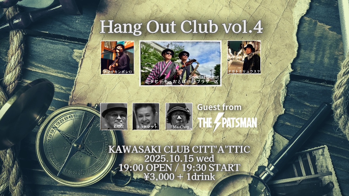 “Hang Out Club”は、アフリカンボレロとナガトミリュウスケ、そしてTHE SPATSMANのメンバーが主催する音楽イベントです。